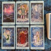 Brian Clark had taught astrology courses with all these mythology characterizations and I heard the artist KS also was a very close collaborate with Clark when working on each of her paintings. It was fun for me when this deck first came out. I had just finished a Western European art history book discussion series of seminars…nice to hear you enjoyed the artistry and character driven deck….getting into my retro tarot pile myself…