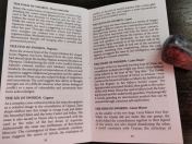 Above you can see how well thought out the astrology to tarot correspondences are. Each Minor Arcana card corresponds with an angular aspect– Aces are conjunctions, for instance; Twos are oppositions, Threes are trines, and so on. For each suit, the little white book gives you the constellation correspondence and the decan ruler.