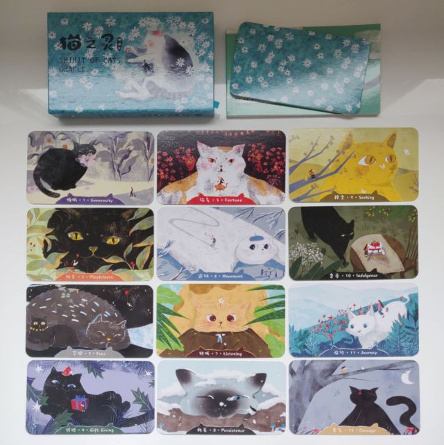 The Spirit of Cats Oracle deck is a Chinese-published deck, but the guidebook is written by my dear friend and Llewellyn author Jaymi Elford. It’s a simple, intuitive 24-card deck for cat lovers. “Cats are mirrors of humanity,” writes Elford. The Spirit of Cats Oracle will tap in to your connection to cat spirits to guide you to a deeper understanding of yourself and the undercurrent of your life.