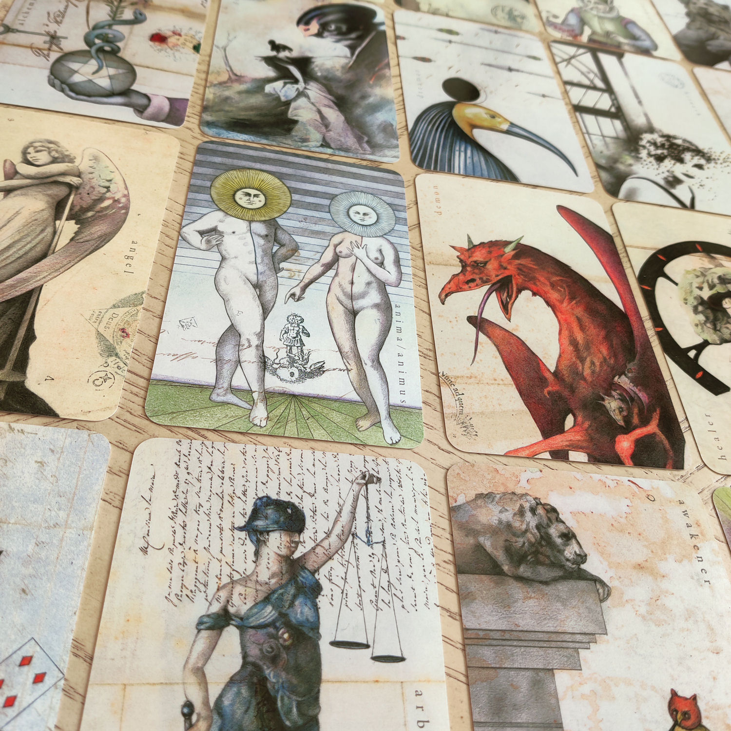 The project premise I defined for myself was “reconstruction of the Etteilla,” but the first challenge presented was, which Etteilla? What do you mean by a “reconstruction” of the “Etteilla”? And then, like, the deeper I tried to philosophize on those questions, the faster my brain melted. =(