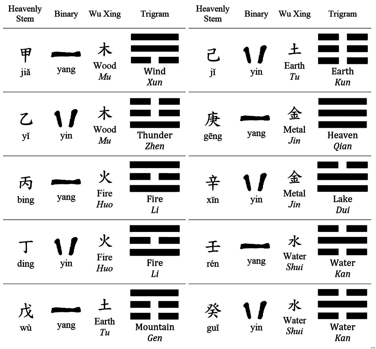The ten heavenly stems correspond with what had been the ten-day week in the ancient Chinese calendar system: