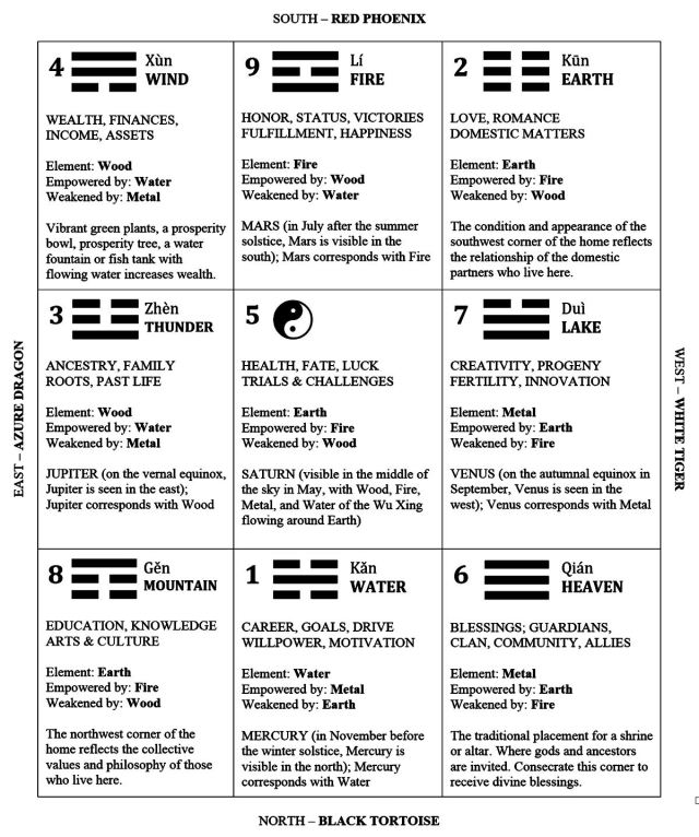 By the way, believing that the flow of qi in the greater cosmos on a macroscopic scale can also determine the flow of qi in the individual home on a microscopic level, feng shui principles follow the same metaphysical principles as astrology, numerology (the Lo Shu magic square), and the Wheel of the Year: