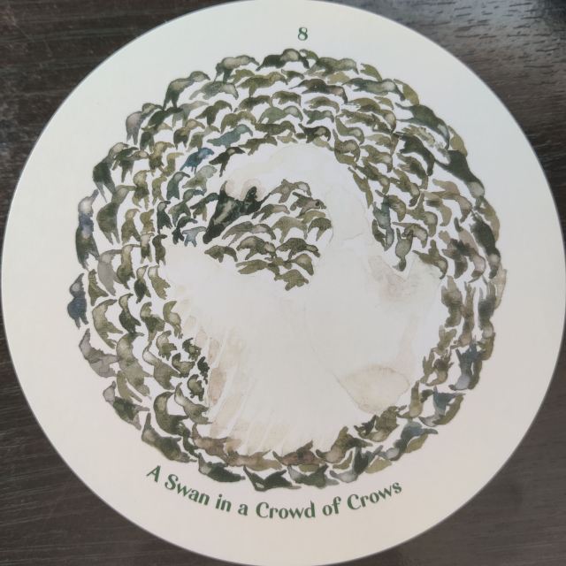Look at the cool optical illusion of Card 8! “A Swan in a Crowd of Crows” asks you to recognize what makes you distinct from others, and distinct from the circumstances in which you find yourself. Instead of seeing yourself as separate, however, see yourself as a unique facet of the greater Oneness of the collective. This archetype expresses the importance of honoring the discomfort of feeling different.