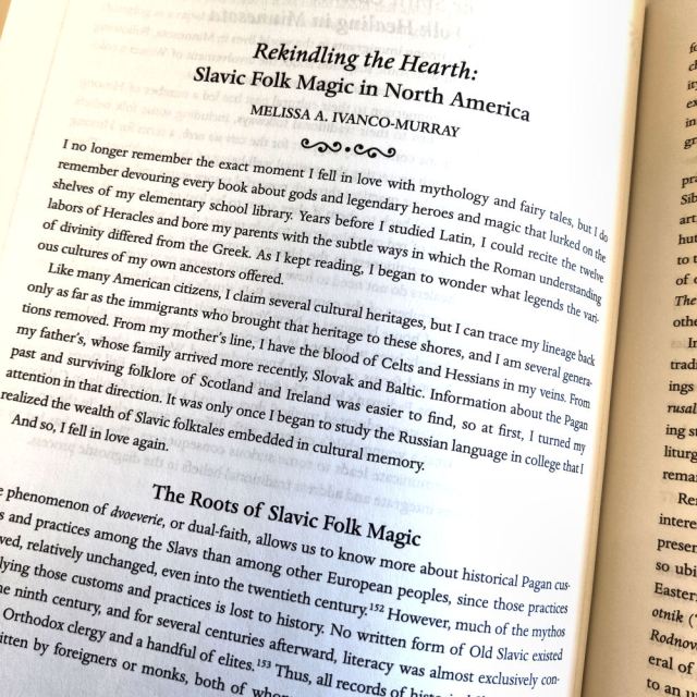 I’m always excited to read Lilith Dorsey’s work, author of Orishas, Goddesses, and Voodoo Queens, along with being a celebrated teacher in our community of Celtic, Afro-Caribbean, and Native American spirituality. Read about Slavic folk magic from Melissa A. Ivanco-Murray, a doctoral candidate in Slavic studies and creator of the Slavic Tarot. This is just to highlight a few of the incredible contributors to this tome.
