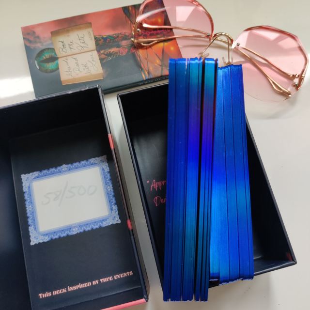 The deck is edged in this metallic sapphire blue and if you love high production value, you’re going to love this deck — matte finish on 400 gsm art paper in sleek, chic packaging.