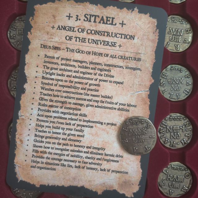 This post is a photographic walk-through of the 72 Angels Talisman Coins and Cards created by Frater Setnakh.