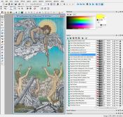 Above you’ll see which Majors I’ve completed the first drafts of as of this writing. I haven’t done Cards 18, 19, or 21 yet, so I’ve used the 1850 Lismon engravings as placeholders. These aren’t final drafts yet, because already I see tweaks that need to be made. For instance, since both Cards 1 and 8 are significator cards in the Etteilla system, the feminine image in Card 8 should be the same proportionate size as the masculine (Thoth-Hermes) image in Card 1, so that needs to be revised.