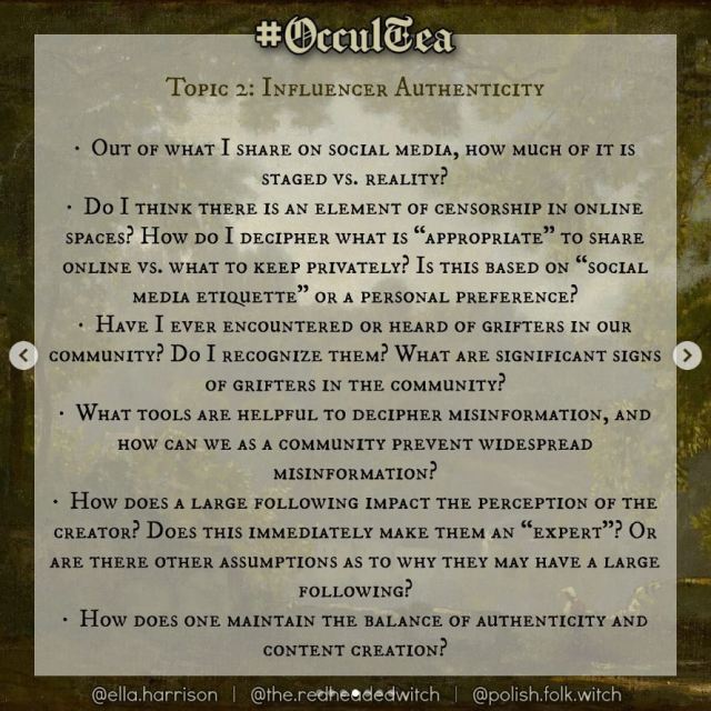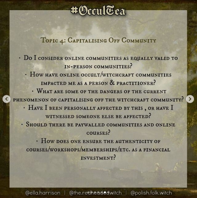 “All members of the occult & witchcraft community – not just content creators or big names, but everybody” is invited to participate in this discussion, with the hope that the hosts might later facilitate a live community panel.