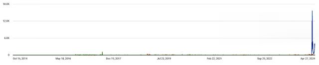 The top line graph above shows that I was at just a bit over 20K as of last year, 2023, and then you see that sharp spike in 2024. The bottom line graph above zooms in to 2024 for a closer look at the spike. It jumped 12K in less than 4 months. And I still haven’t quite figured out why.