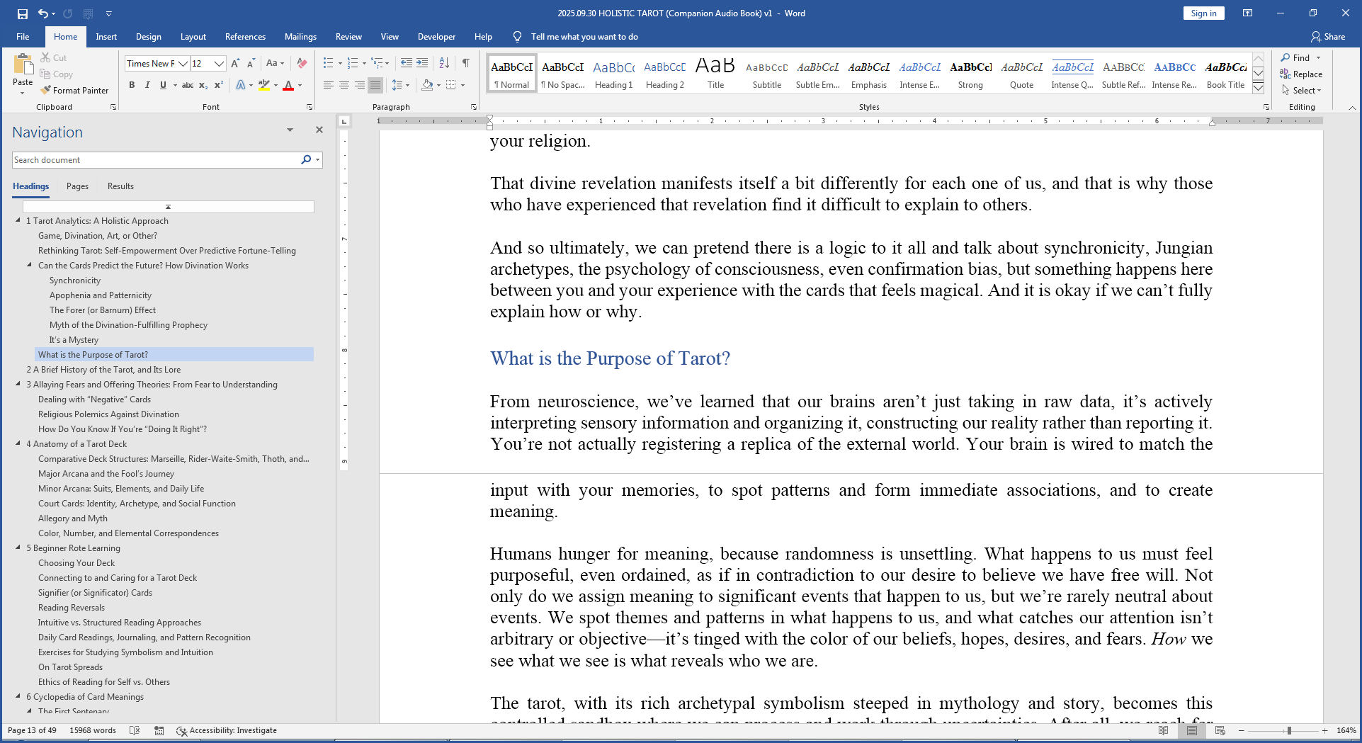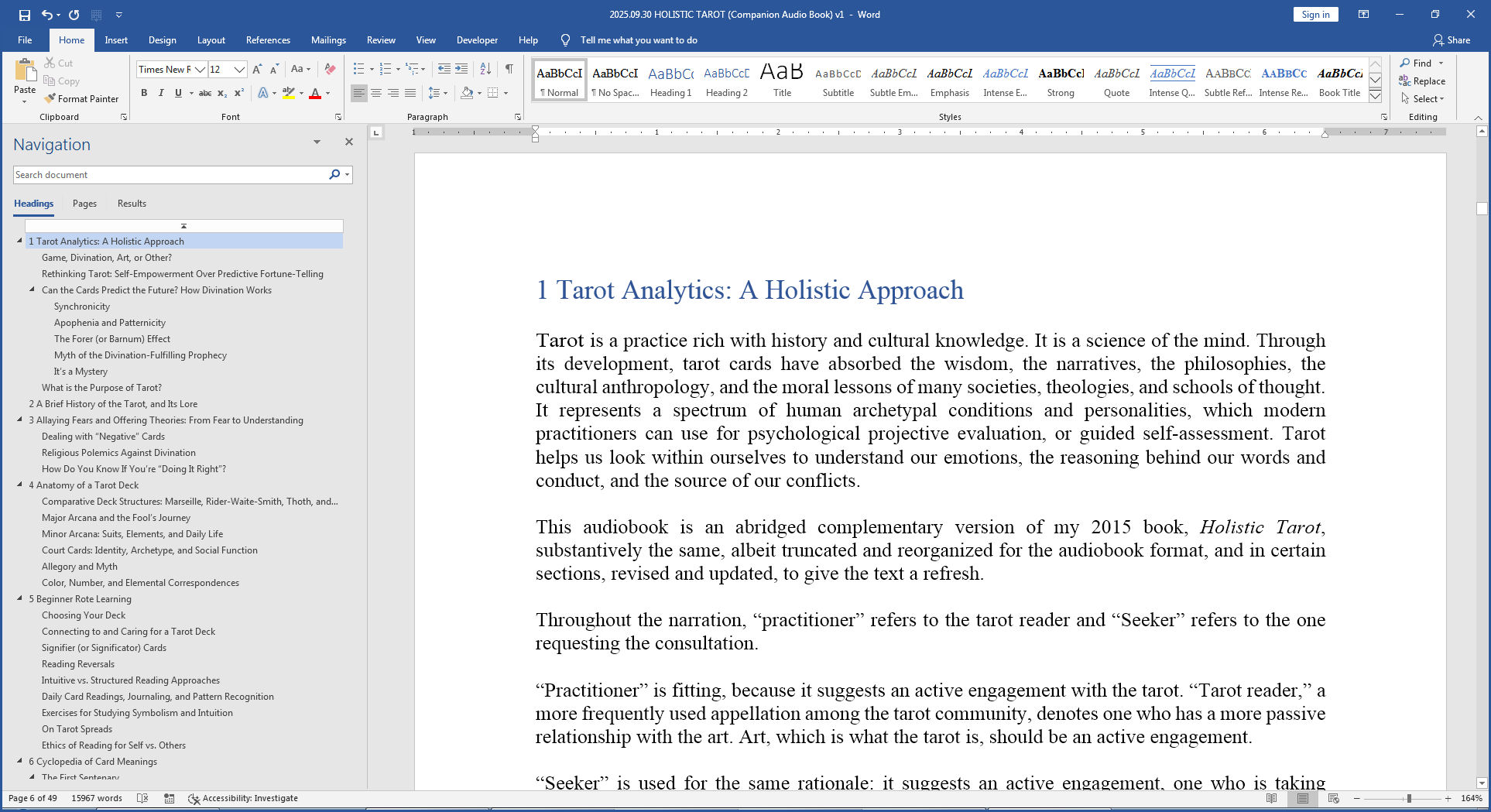 Most contemporary tarot and metaphysical authors already have a conversational and casual writing style, at least much more so than I do, so they convert easily into audiobooks. Whereas my more academic style of writing in HT doesn’t convert so well, not without some noodling. So I’ve been trying to balance keeping consistent with the style that HT and pretty much all my published books established while lightening the tone just enough so it’s a book you listen to, rather than an encylopedic reference you touch and go into from your study desk.