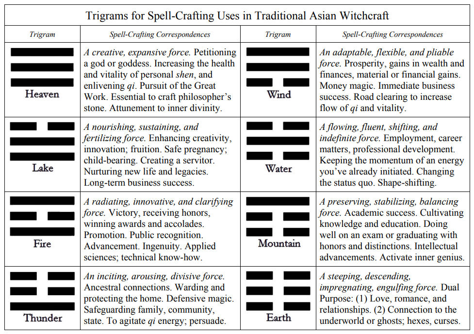 Correspondence tables of the Ba Gua eight trigrams, for instance, are all about how to interpret the formations of yin and yang. Hence, the practitioner’s use of reference tables and diagrams. For the notable ones found in I Ching, The Oracle, see here.