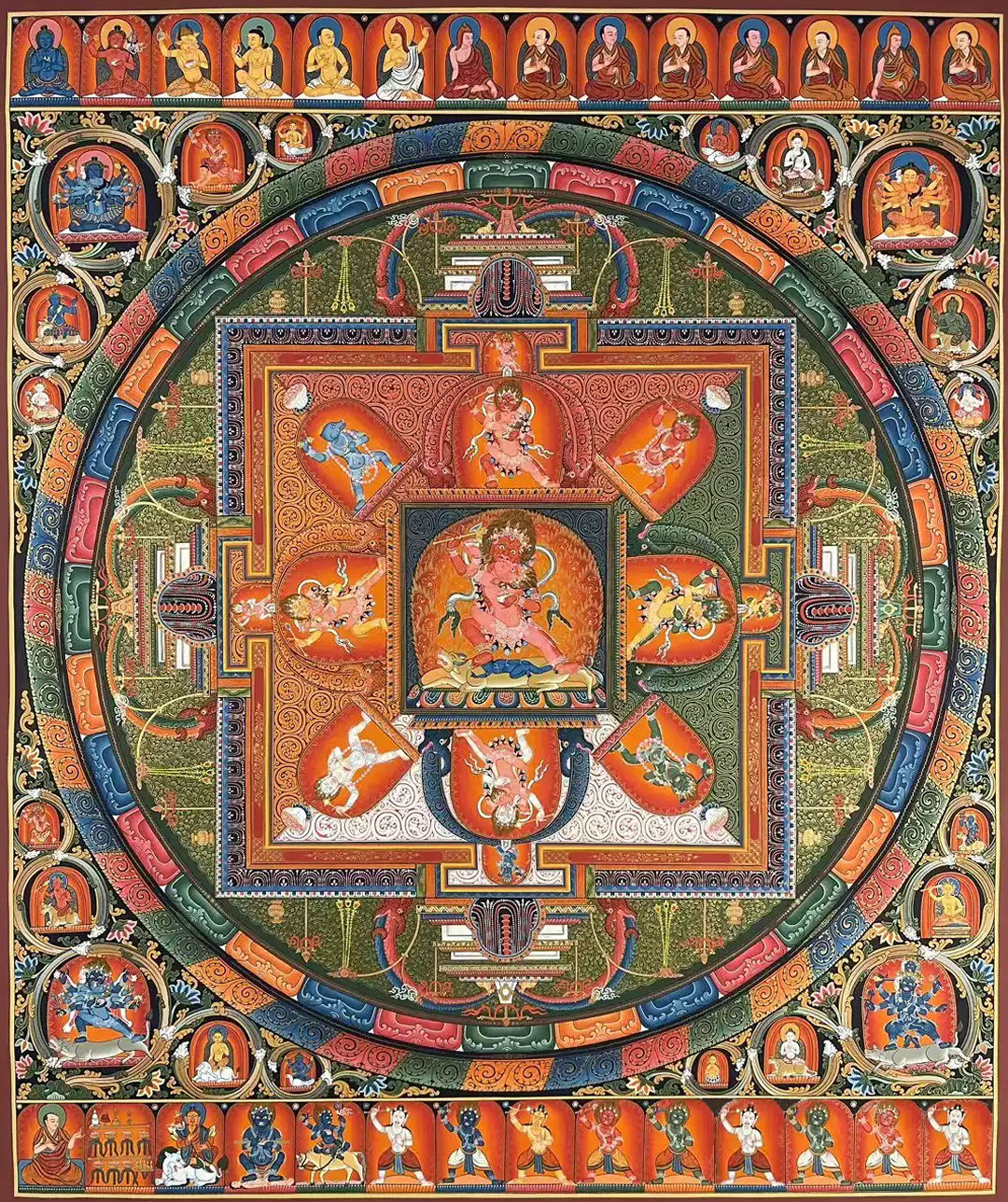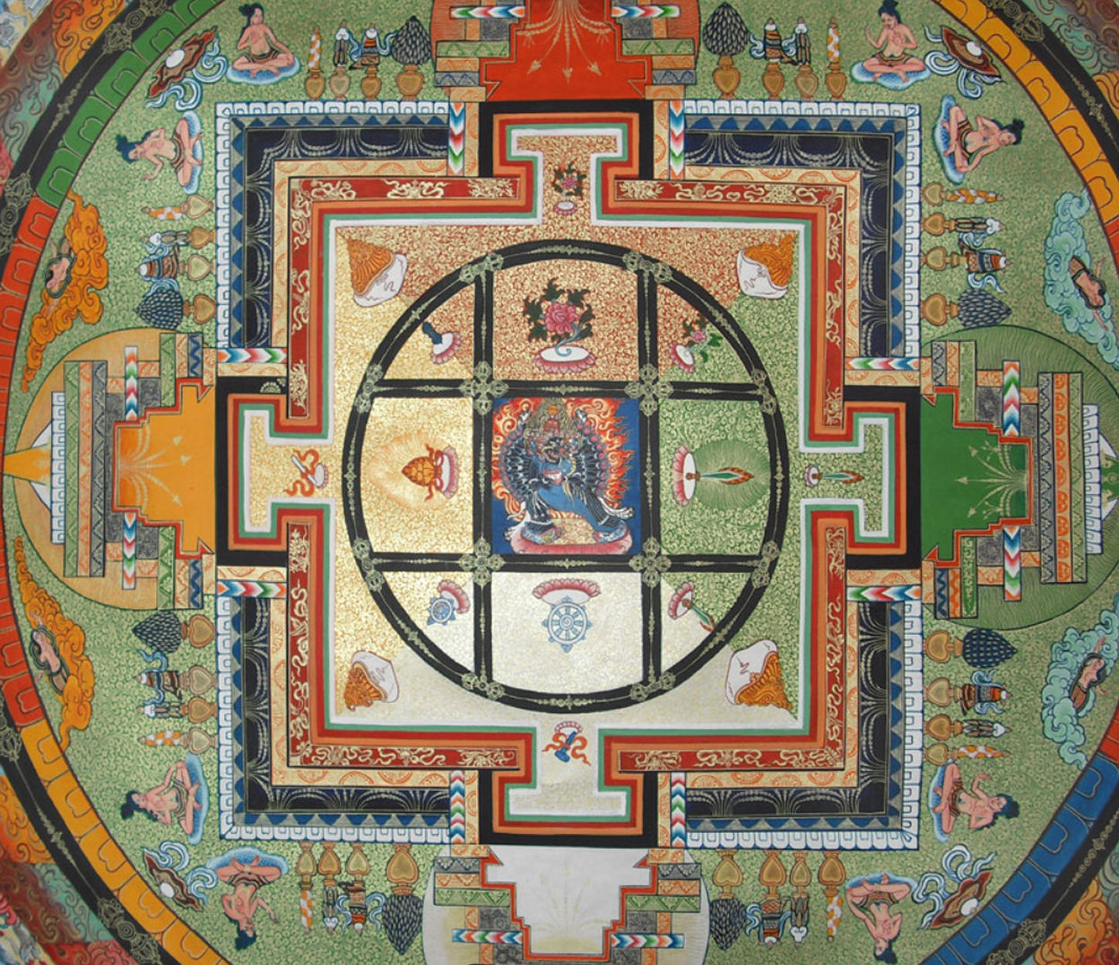 Start by casting your own Yamantaka mandala, which will become the ritual space for any Yamantaka rites you perform. In this write-up I’ve included several historical and cultural examples of Yamantaka mandalas to inspire your own work. Follow the core elements, concept, and structural layout, and then let your creativity lead for the details and final design.