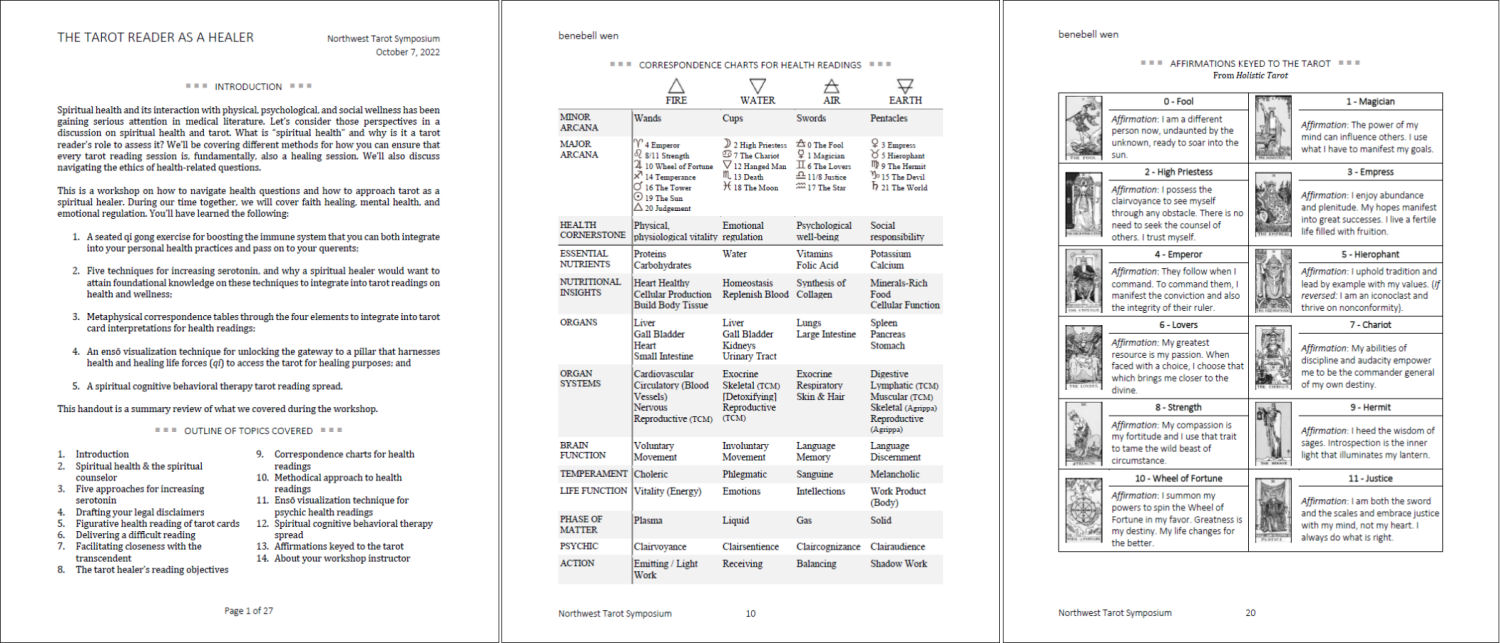 Set aside a few hours of free time to read through the entire handout, which will serve as your handbook on how to approach health readings with the tarot.