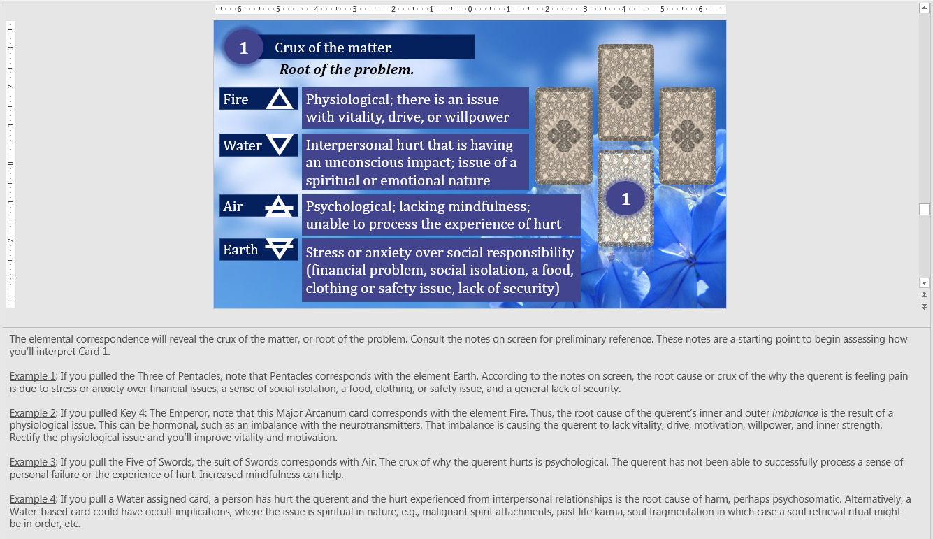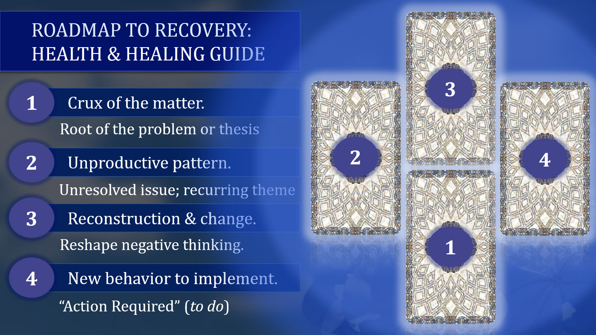 When you get to Slide 46, walk through the 4-card reading. You’ll then use the handout as reference on how to interpret the cards specifically for a health reading, from a spiritual and energy perspective.