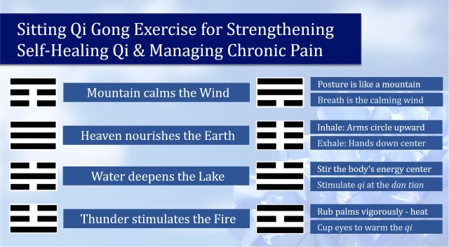 This is a six-minute physical activity for increasing serotonin, strengthening your inner energy body, and bringing calm. Over time, routine qi gong practices such as this one will help generate your body’s ability to self-heal and help you to manage chronic pain, be that emotional or physical.