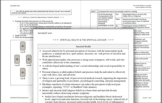 Spiritual health and its interaction with physical, psychological, and social wellness had been gaining serious attention in medical literature. So I wanted to consider those perspectives in a discussion on spiritual health and tarot.