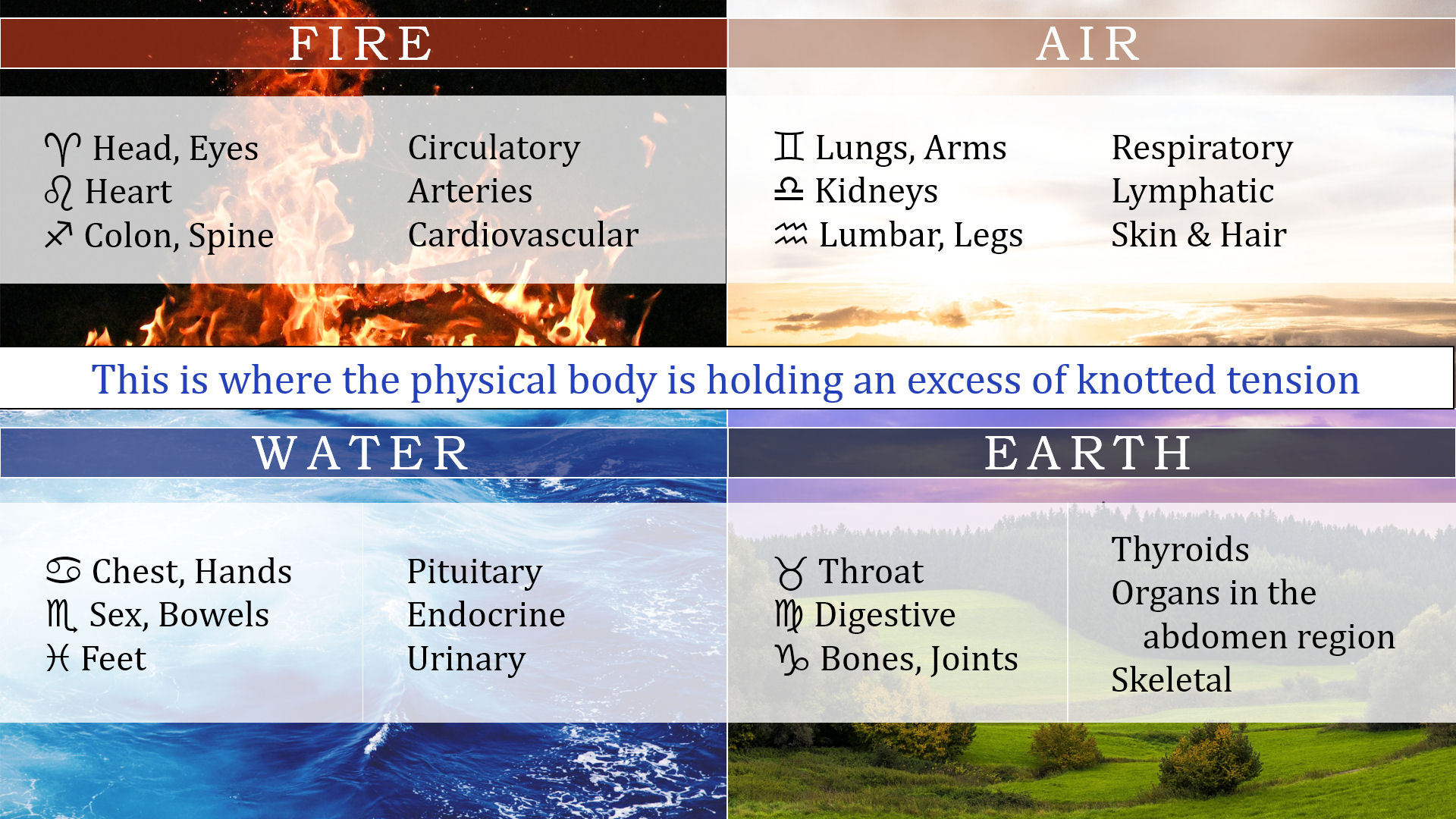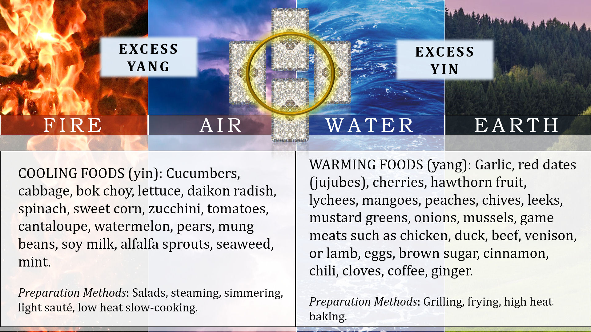Lots of Fire-Water interplay could indicate excess heat in terms of their Qi life force; lots of Air and Earth could indicate excess cold in terms of their Qi.