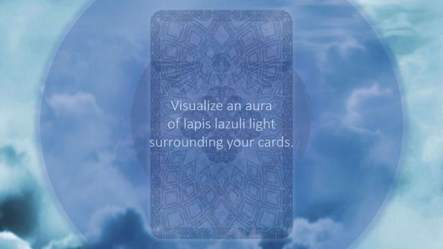 In short: Visualize your mind connecting and becoming one with the infinite sky. Then visualize an enso zen circle appearing, representing a gateway. You use the caduceus (representing Hermes, the divinity that oversees the tarot) as the key to unlock that gateway.
