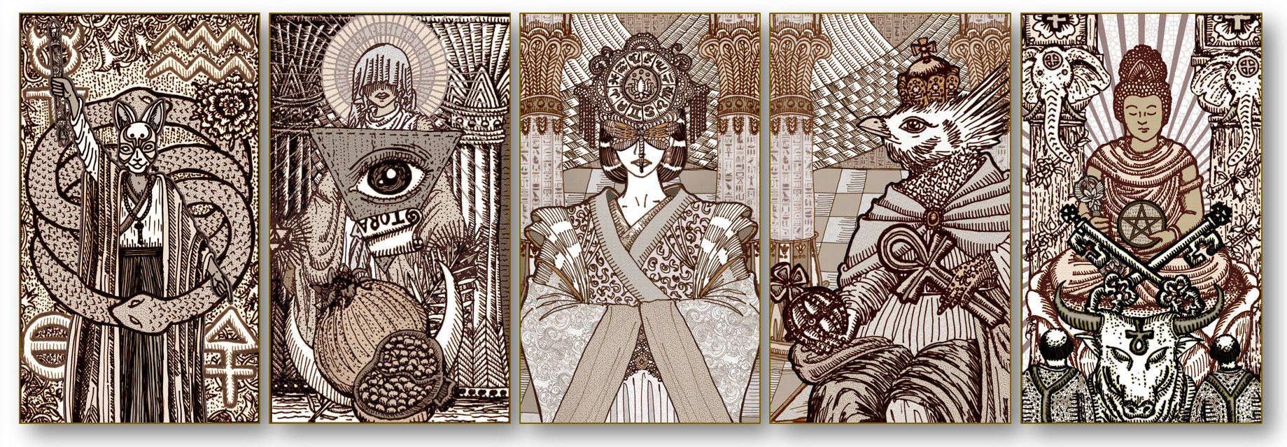 You can download the black & white image files for the SKT Vitruvian Major Arcana illustrations here. (To be more specific, it’s the Majors, the four Aces, and the four Archangels.)