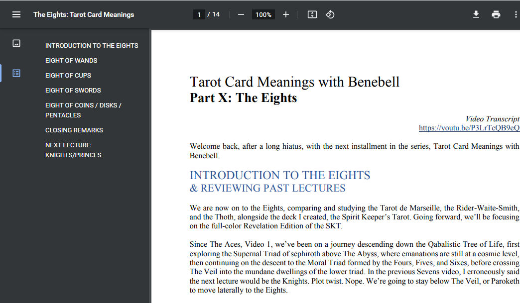 This is Video 14 in an educational series on the tarot cards. Closed captioning is provided for all videos in this series. A written transcript is also provided as a free pdf download.