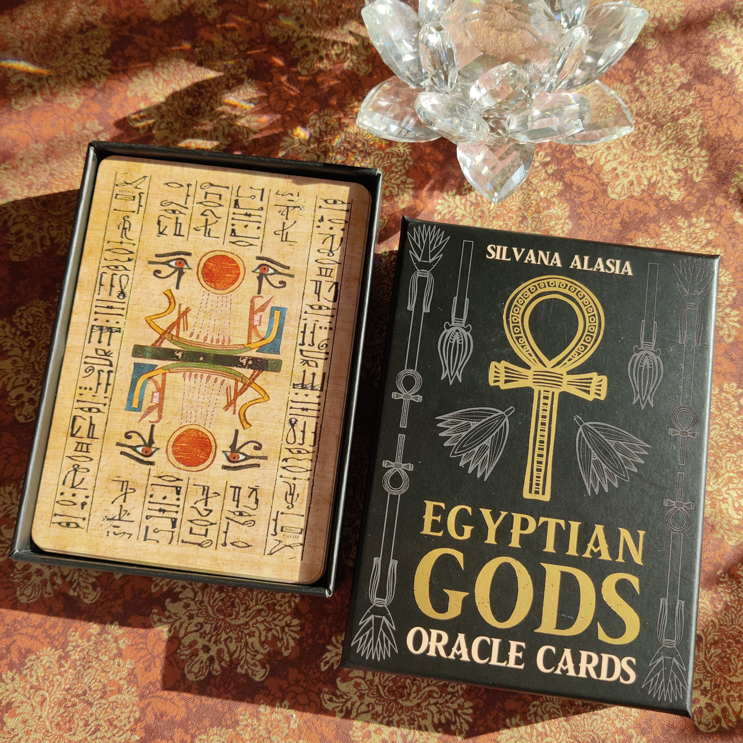 This is a deck of 36 cards, each bringing messages of wisdom, warnings of danger, advice, and protection. Each card features a god or goddess from the Egyptian pantheon.