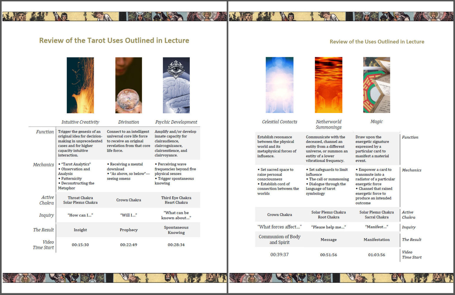 A workbook with exercises to help you learn and master the mechanics of such tarot operations will also be provided to supplement the video lecture.