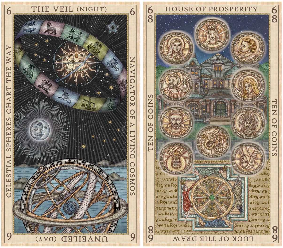 My 21st century hybrid process mirrors the hybrid process of producing the full-color Etteilla decks back in the late 18th and early 19th centuries. The historical Etteillas were first created in line via letterpress or engraved plates, printed on a press, then brought to life mechanically with hand-applied watercolors and paints.