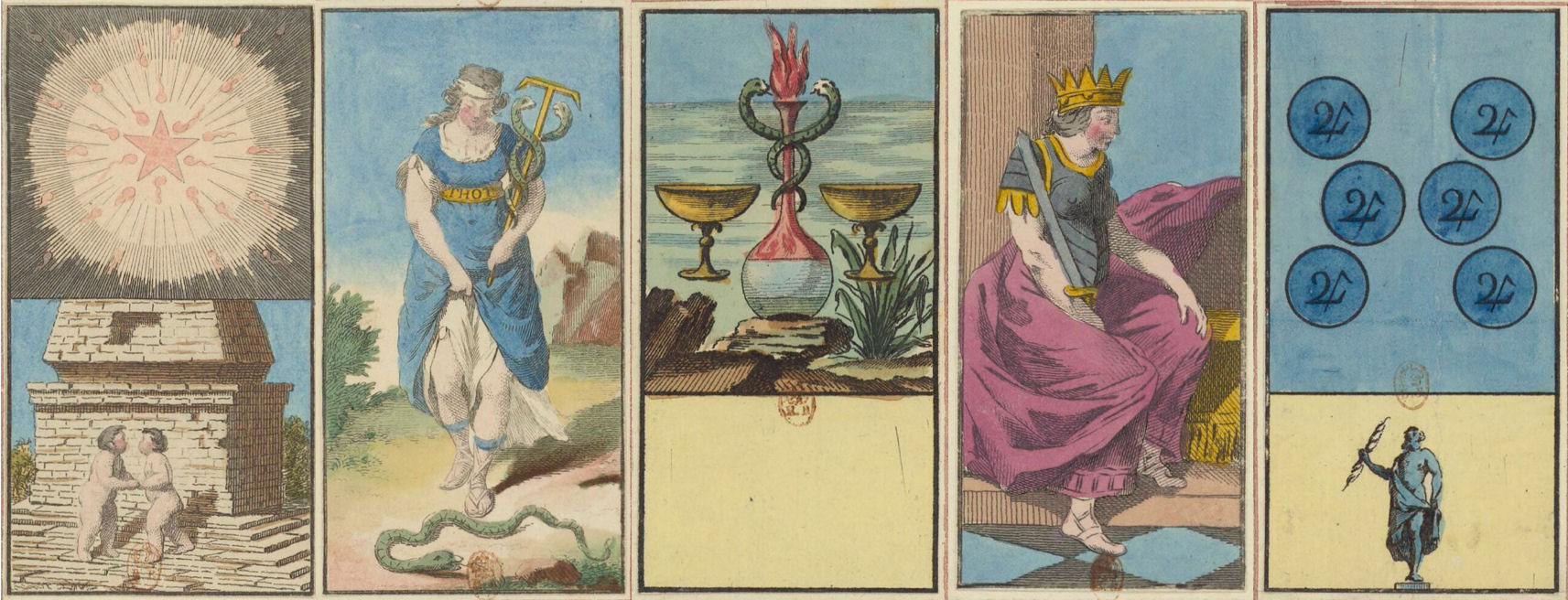 Livre de Thot (Book of Thoth), circa 1789, engraved by Pierre-François Basan. Paris, France. Brush-colored cards.
