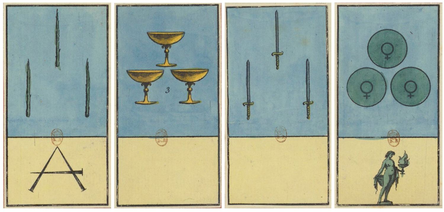 SIDEBAR | For free downloads of the historical Etteilla decks and related paraphernalia, check out the page ETTEILLA TAROT DOWNLOADS.