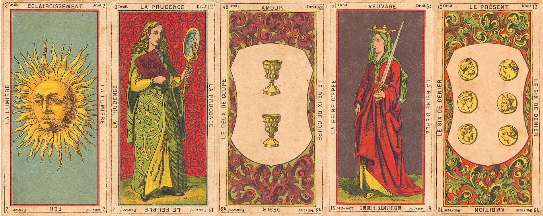 Historians trace the game of tarot to Renaissance Italy, but it was 18th century France that gave the cards its occult interpretation. It was the work of French occultists that crystallized the characterization of tarot as a book of revelations on cosmogony. Etteilla is also credited as one of the early tarotists to espouse reading with reversals.