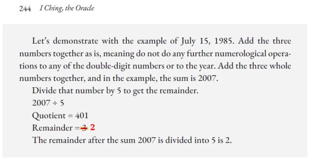 Also, under the Chapter 7. Divination Methods heading, the sub-heading “I Ching and the Tarot” should be the second indented level, not the third. Needless to say, using the tarot and I Ching together is not a “Plum Blossom Method.” =)