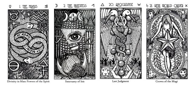 However, Waite and Crowley differed (and disagreed) significantly on the interpretation of many keys in the tarot, so harmonizing both approaches wasn’t always easy. I acknowledge that some of the resulting cards I’ve drawn might end up alienating both camps.