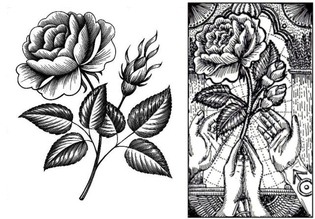 There are, of course, instances where what I’ve drawn was heavily influenced by an existing historic woodblock print, but this is not a digitally cut and paste or multi-media collage deck. I did not draw these illustrations digitally on a tablet where I could simply hit the “undo” button when I made a line error.