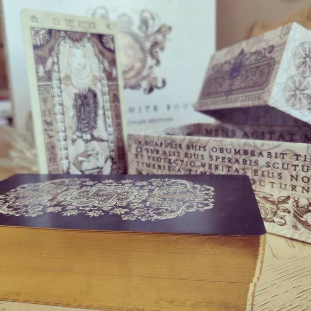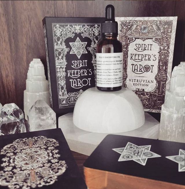 All decks are anointed with hand-crafted holy anointing oil made of Ceylon cinnamon, cassia cinnamon, myrrh resin, and sweet lemongrass. I craft my own anointing oil from essences and macerated oils I make myself from raw ingredients painstakingly sourced to ensure quality.