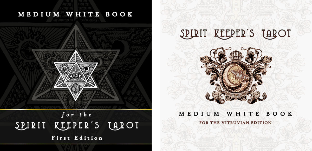 The Medium White Book is an introductory-level guidebook to the Spirit Keeper’s Tarot deck, Vitruvian edition. You can download the E-book as a PDF file. It’s totally free. Scroll down for the link to save your own copy of the Book. You can also order a print copy for $9.24. All details and purchase link below.