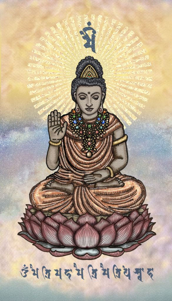 Maitreya: Divine Loving-Kindness. For more information about what’s depicted on this print and its symbolism, visit “Divinity Blessing Cards.”