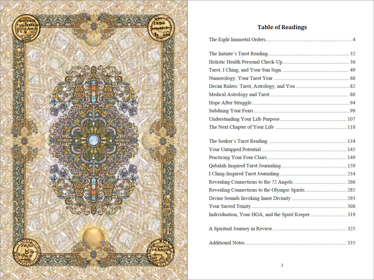 Book of Readings Tarot Workbook Digital Files: The workbook contains some elements of the SKT study journal included in the premium package of the first printing, but contains new features to provide a multifaceted holistic study of the tarot keyed to the SKT. The workbook is structured for guided spiritual development. An unlisted link to a third-party print-on-demand site will be provided. At your option, you can order the spiral-bound notebook via Lulu.com.