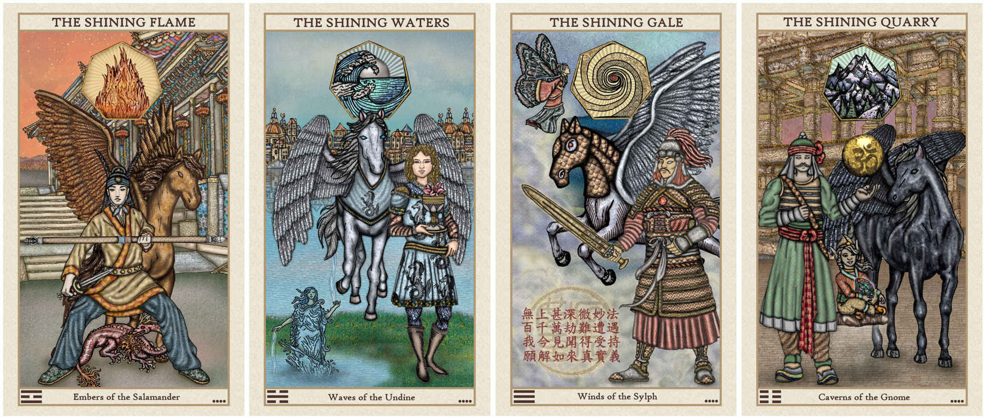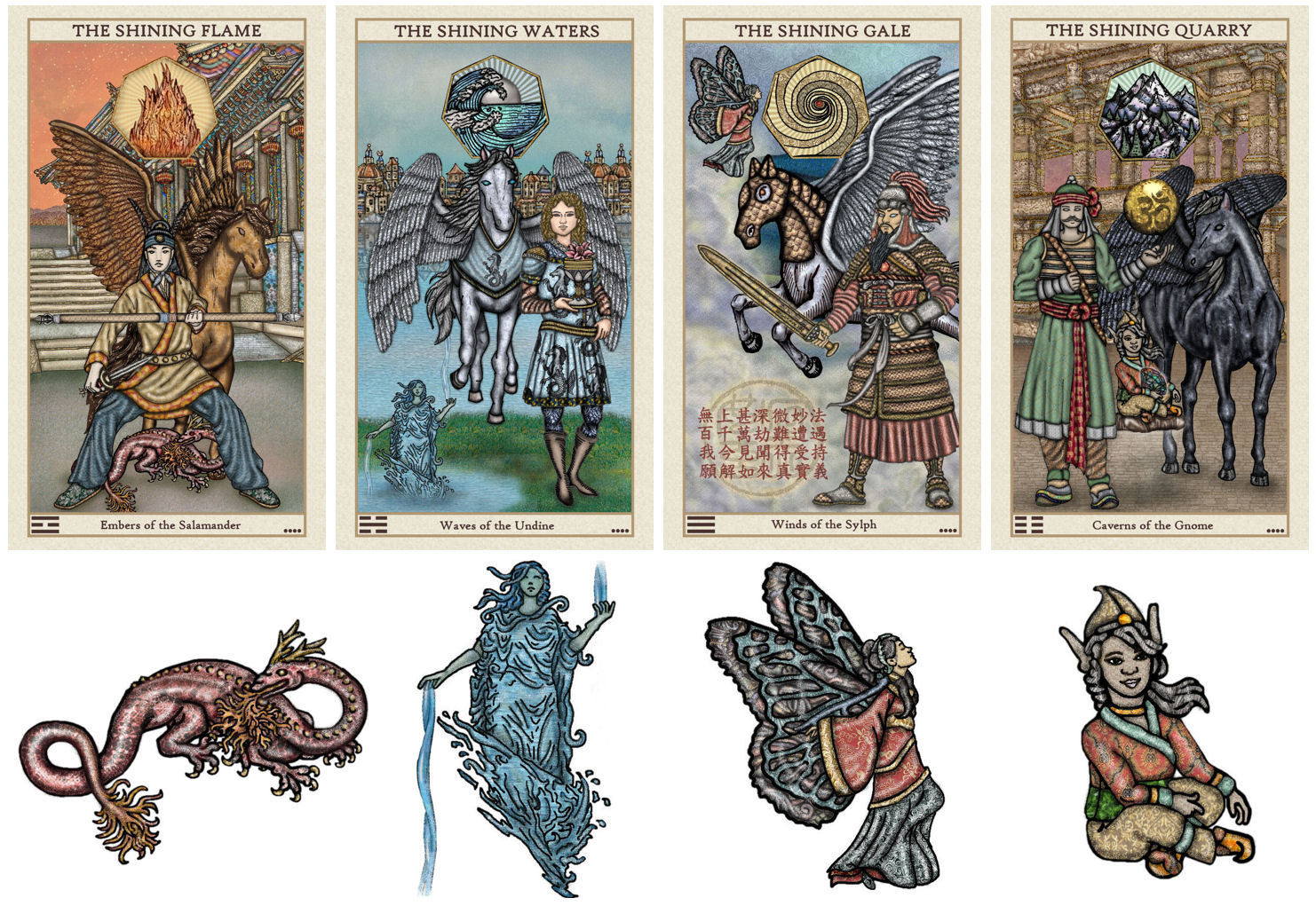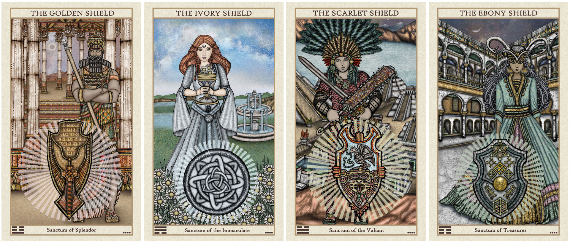 Archangels are the tarot Kings. Shields are the tarot Queens. The Shining Ones are tarot Knights and the Strongholds are tarot Pages.