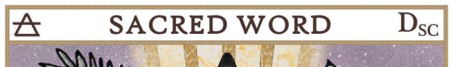 The scepter pointing to the reader’s left is inscribed with the name Metatron, the angelic invocation for receiving secret knowledge. The scepter pointing to the reader’s right is inscribed with the name Uriel (Auriel), the Divine Light, or Divine Fire. The center scepter features sigils from the Holy Tablet of Adam (sigil for gaining intelligence) and the Holy Tablet of Jeremiah (endowing you with the gift of truthful visions). Sigils along the bottom half of the scepters empower it as wands.