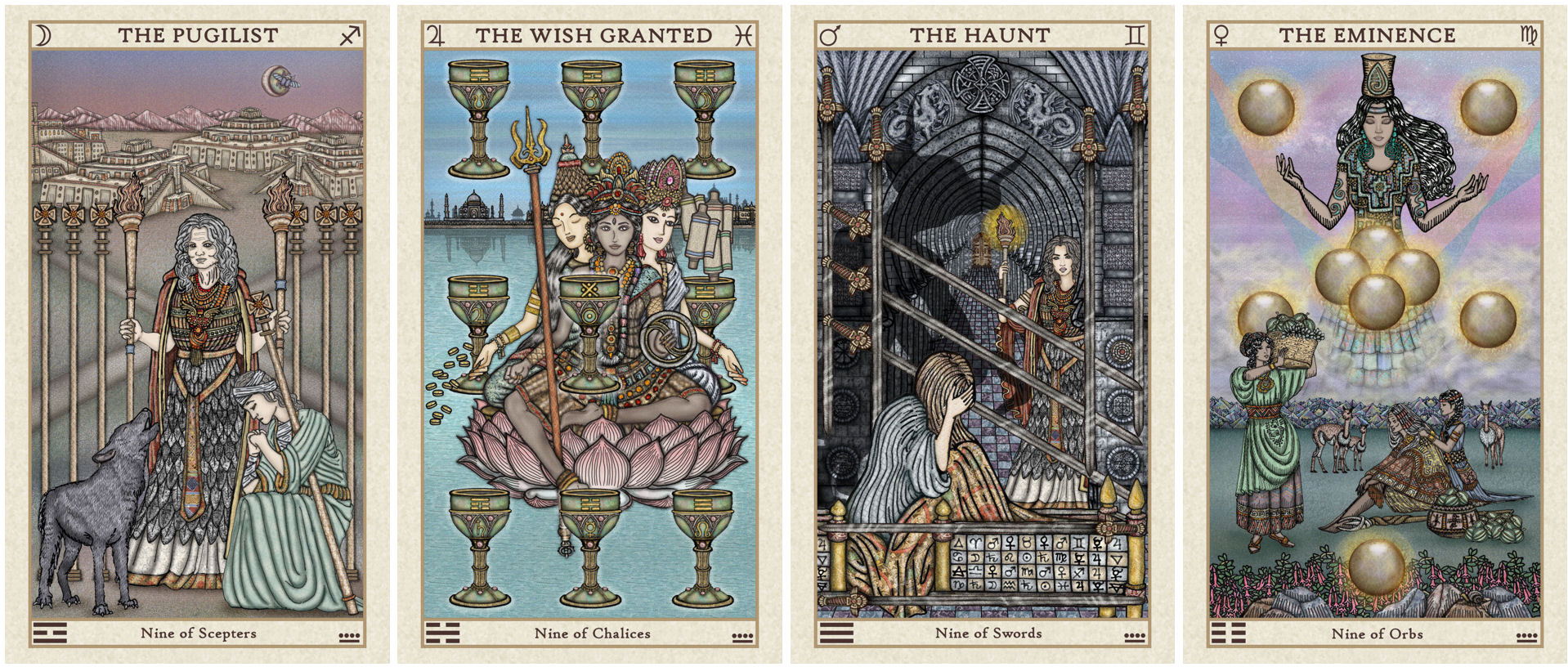 The Nines represent the imaginative world within the mind, and yet this is the very foundation upon which the Creator builds its Creation. Ideas and knowledge are on the verge of taking form. The Nines are the source from where magic begins to take form toward manifestation.