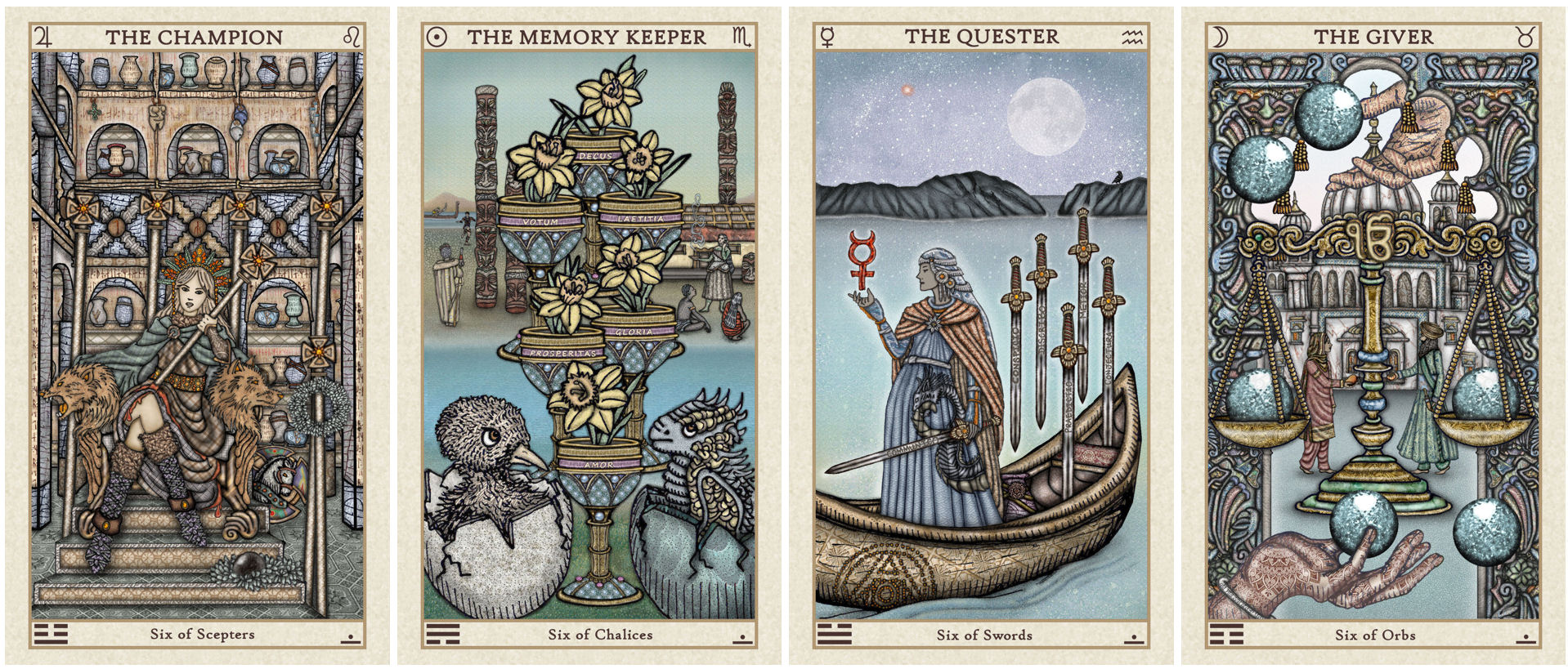 The Giver. Six of Orbs: Your charity to others will return riches to you six-fold. Abundance is your birthright. Let the karmic circle remain unbroken: give to receive; receive, but give back. The Giver is the spirit of provision. Seeking anonymity, The Giver shows only the hand in offering. Yet know this about one of the many names for The Giver: Anesidora—the “Giver of Gifts.” In the Six of Orbs, we also see the divine blessings of Demeter, who gifts you with material success. When The Giver appears to you, the spirit of nurture is all around you. Give freely, mercifully and you shall receive freely, and mercifully.