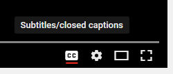 At the bottom of the video screen, click the “CC” icon to turn on the closed captioning.