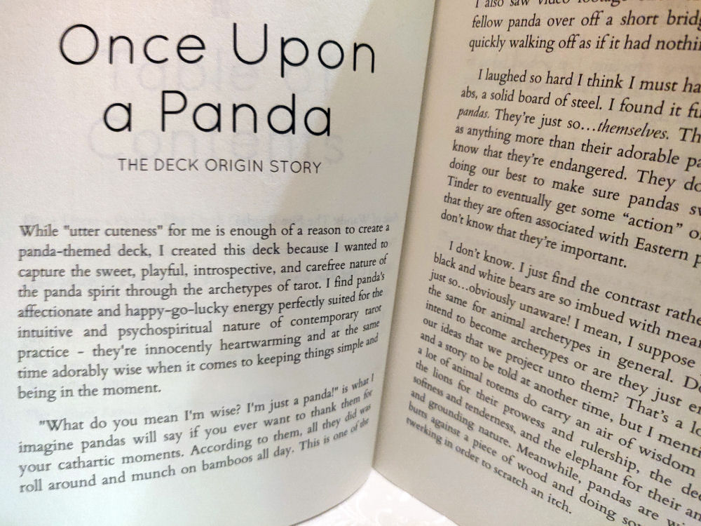 I knew that the Way of the Panda Tarot would be cute and cuddly, but I was not prepared for its depth of wisdom or its exploration into a unique philosophy of life. In the same way kids say the darndest things, pandas do, too.