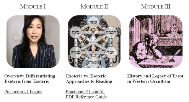 The practicum portion will be a series of guided tarot readings and training videos to demonstrate the basics and preliminary exploration of using tarot to commune with your Holy Guardian Angel, spell-craft for financial gains, extracting cards for talismans, petitioning forth spirit entities to conduct a divinatory reading, using tarot to commune with land spirits or assess the characteristic properties of a land, and tarot in pathworking, with proprietary training models shared on how to enhance your clairvoyance and clairaudience during a tarot reading.